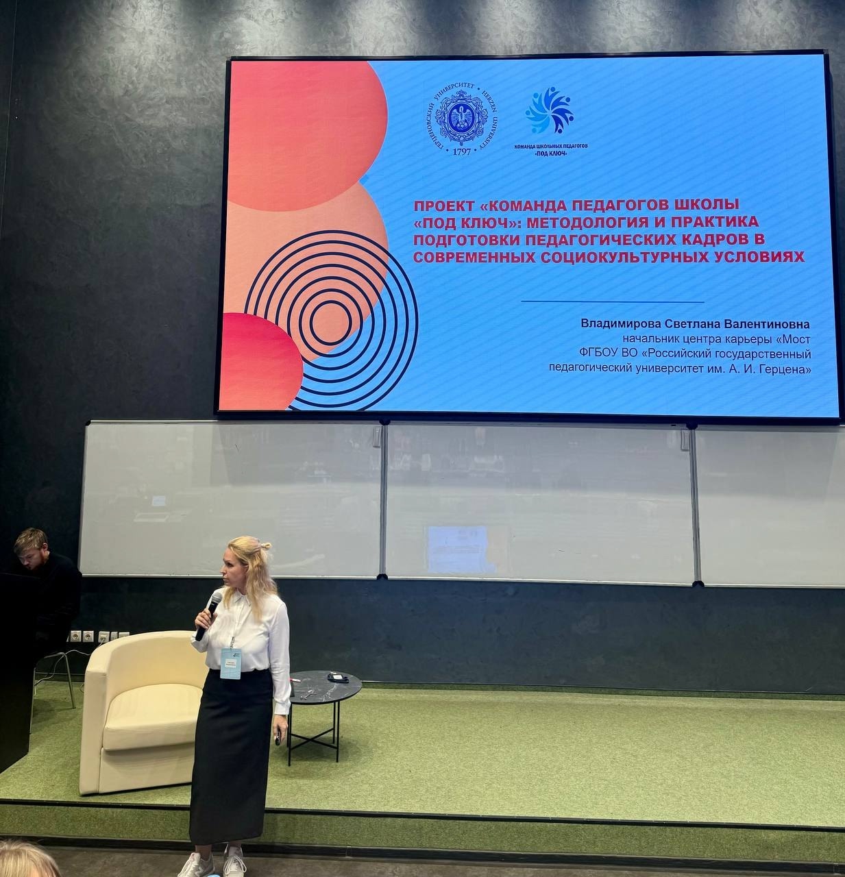 Главным событием стала сессия, где участники делились лучшими практиками. Светлана Владимирова представила два наших успешных проекта из Герцена: «Команда школьных педагогов под ключ» и «Диалог с работодателем». Коллеги из других университетов высоко оценили наш опыт — эти проекты можно адаптировать и для них.