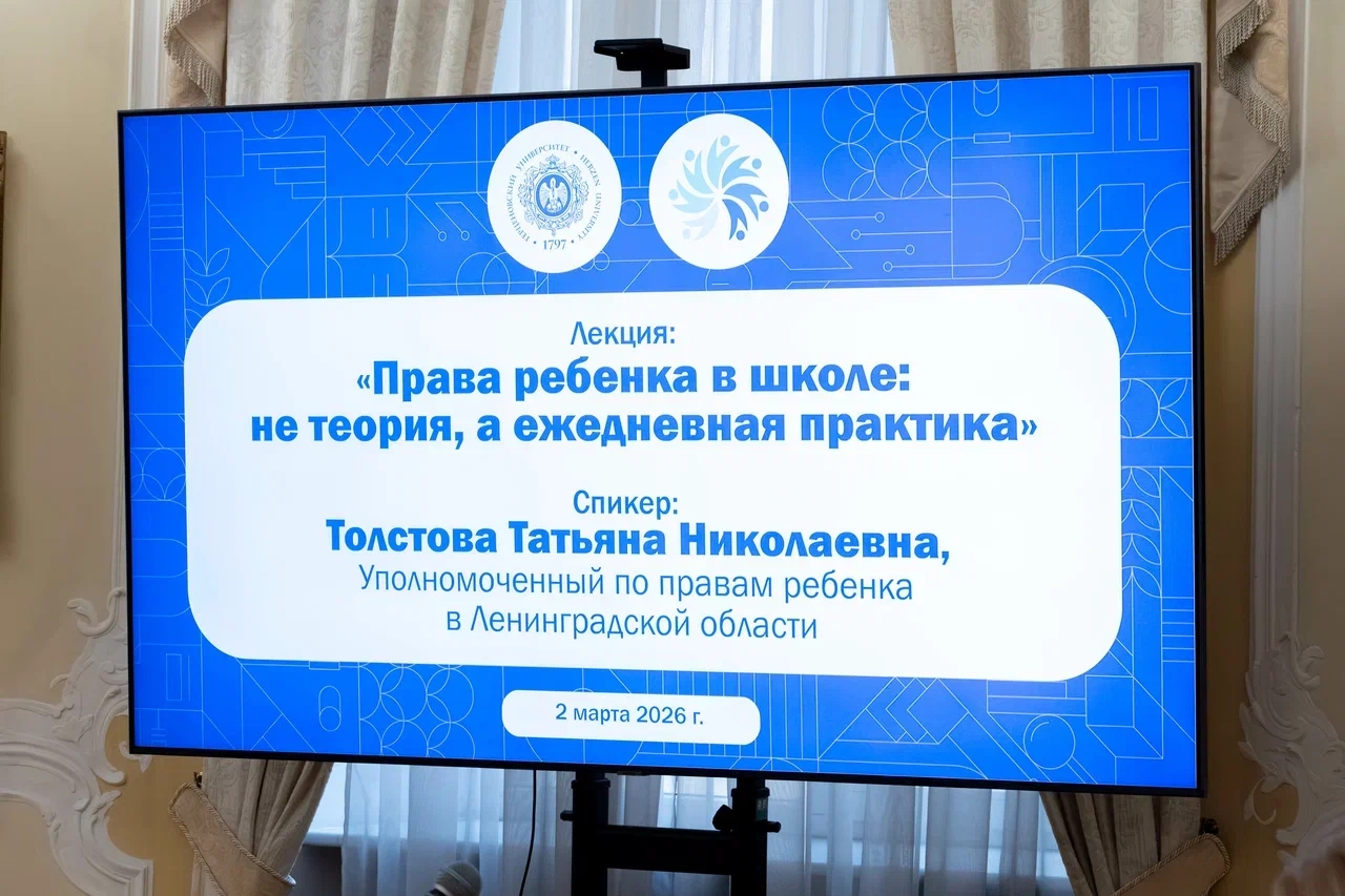 В рамках проекта «Команда школьных педагогов „под ключ“» состоялась открытая лекция Татьяны Толстовой, Уполномоченного по правам ребенка в Ленинградской области и выпускницы РГПУ. Тема встречи — «Права ребенка в школе: не теория, а ежедневная практика» — вызвала живой интерес у студентов.